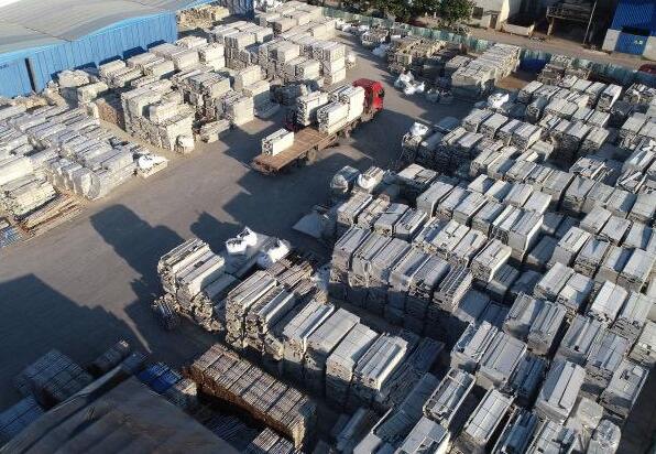 雙峰縣高新區(qū),工人在操作叉車卸運(yùn)建筑用鋁模板配件。乃繼輝 攝