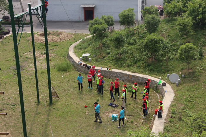 14:30拓展活動繼續(xù)進(jìn)行,下午活動一開始就有“積極分子”提議說上午的游戲難度還不夠,于是一場緊張刺激的“高空天梯”就此展開……