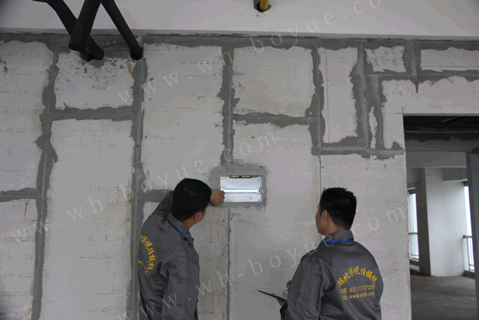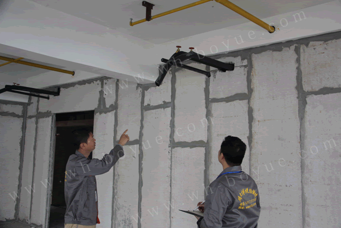 博悅佳工程負責人對墻板開槽情況進行檢查